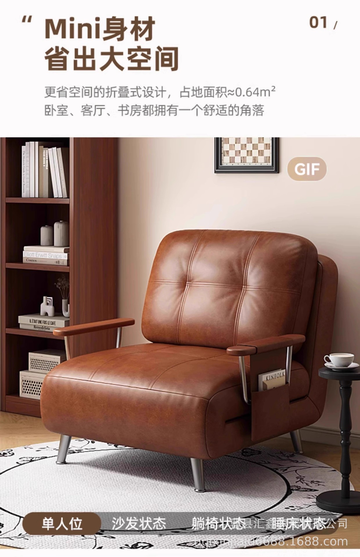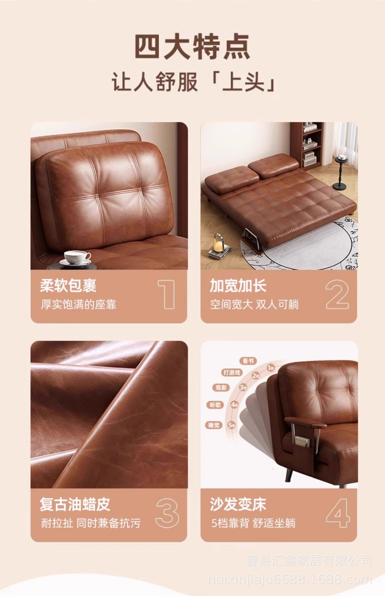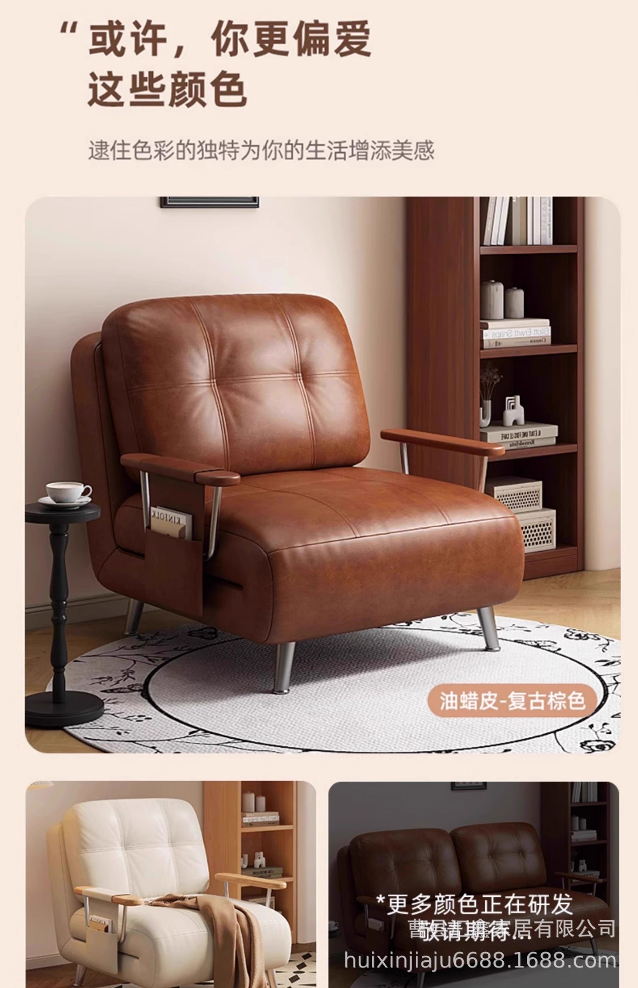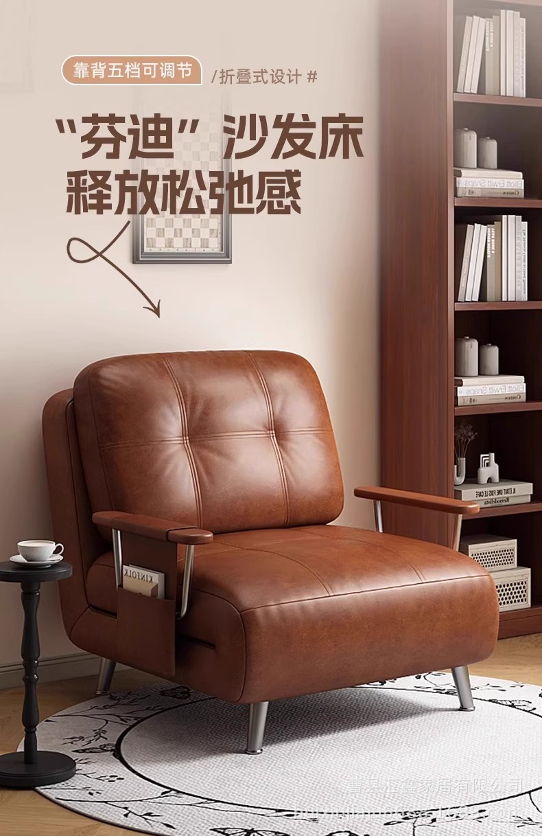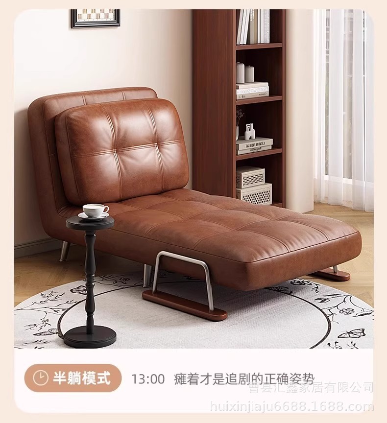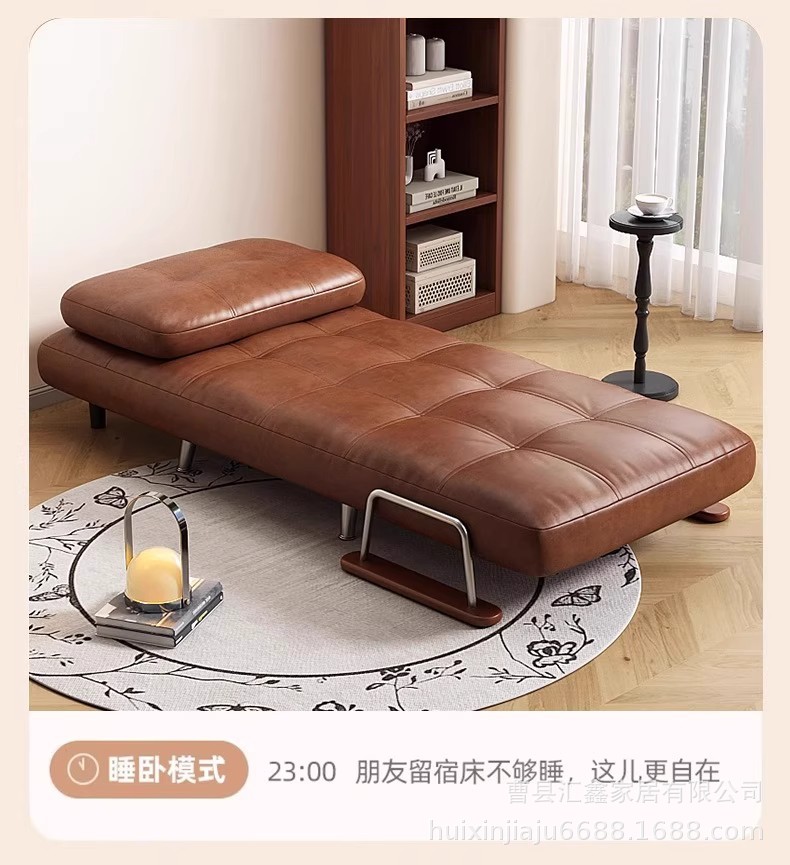 中古风沙发床可折叠两用复古小户型油蜡皮沙发椅2025新款懒人沙发