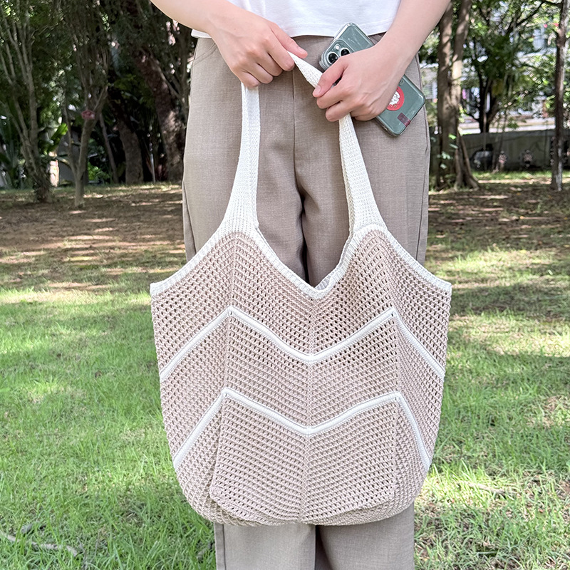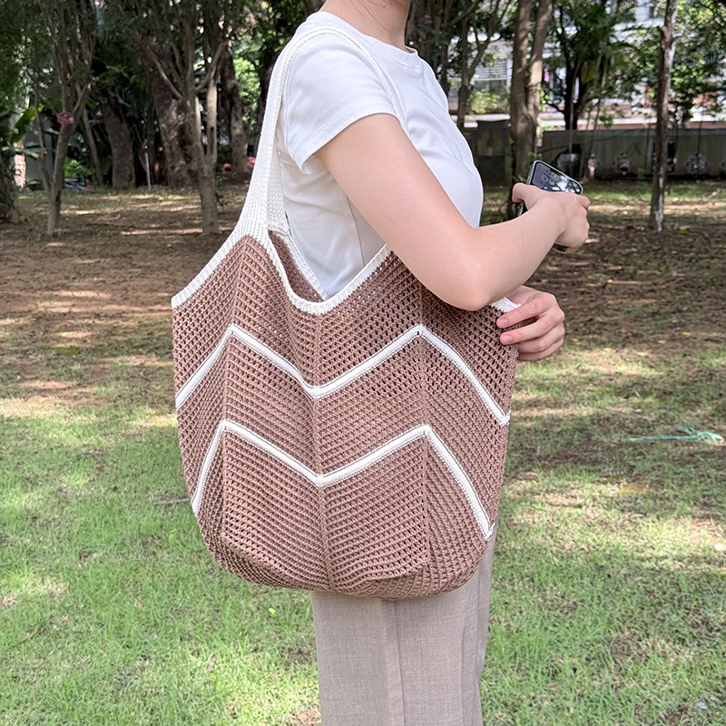 Casual Large-Capacity Knitted Bag for Women 2025 New Popular Versatile Foreign Style Shoulder Bag Fashion Tote Woven Bag