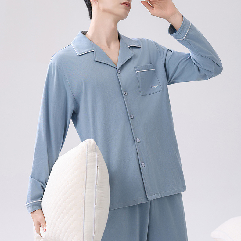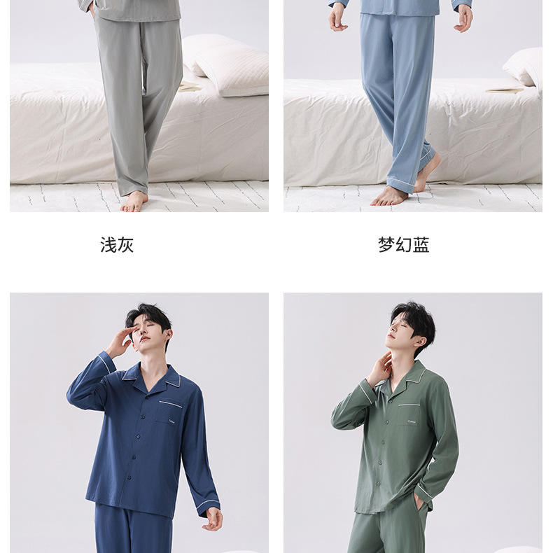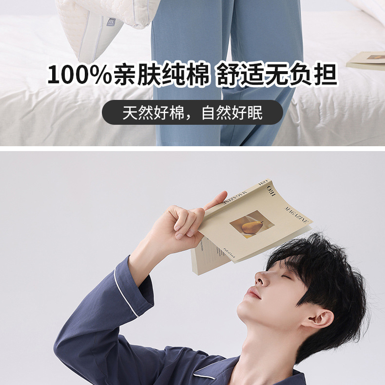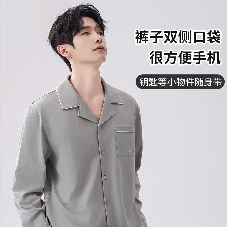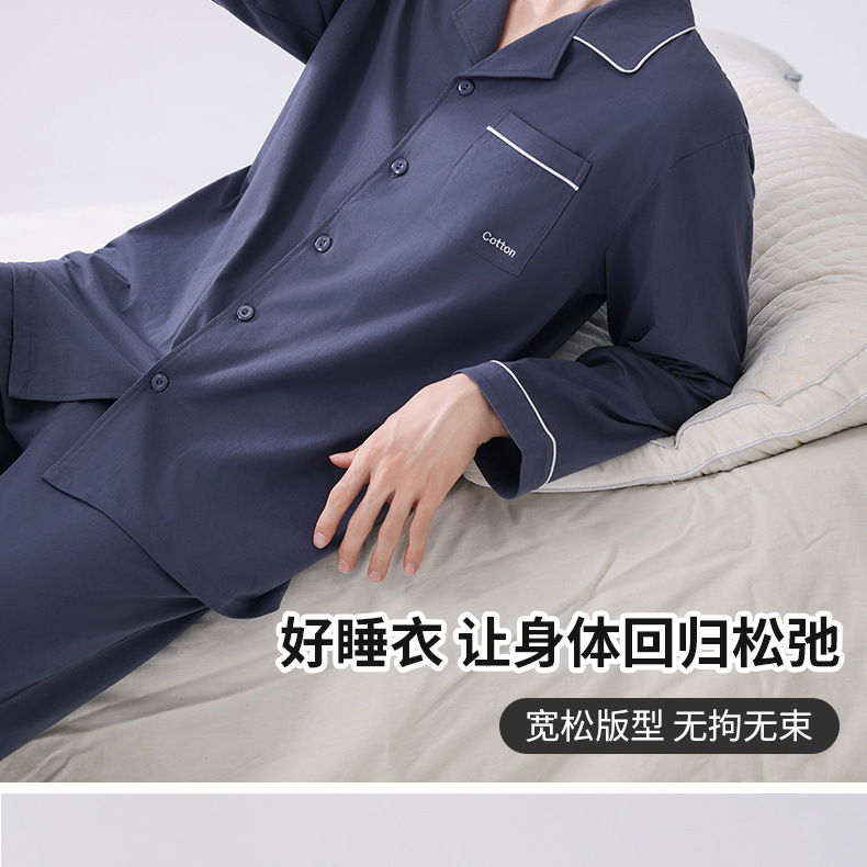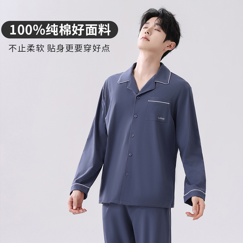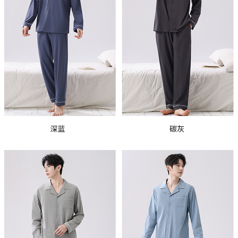 Men's Pajamas Pure Cotton Men's 100% Cotton Home Wear Set Loose Long-Sleeved Long Pants Spring & Fall 2026 New Style - KYATmall - Myanmar Online Shopping | -ကျပ်မော်လ် - မြန်မာ့အွန်လိုင်းဈေးကွက်