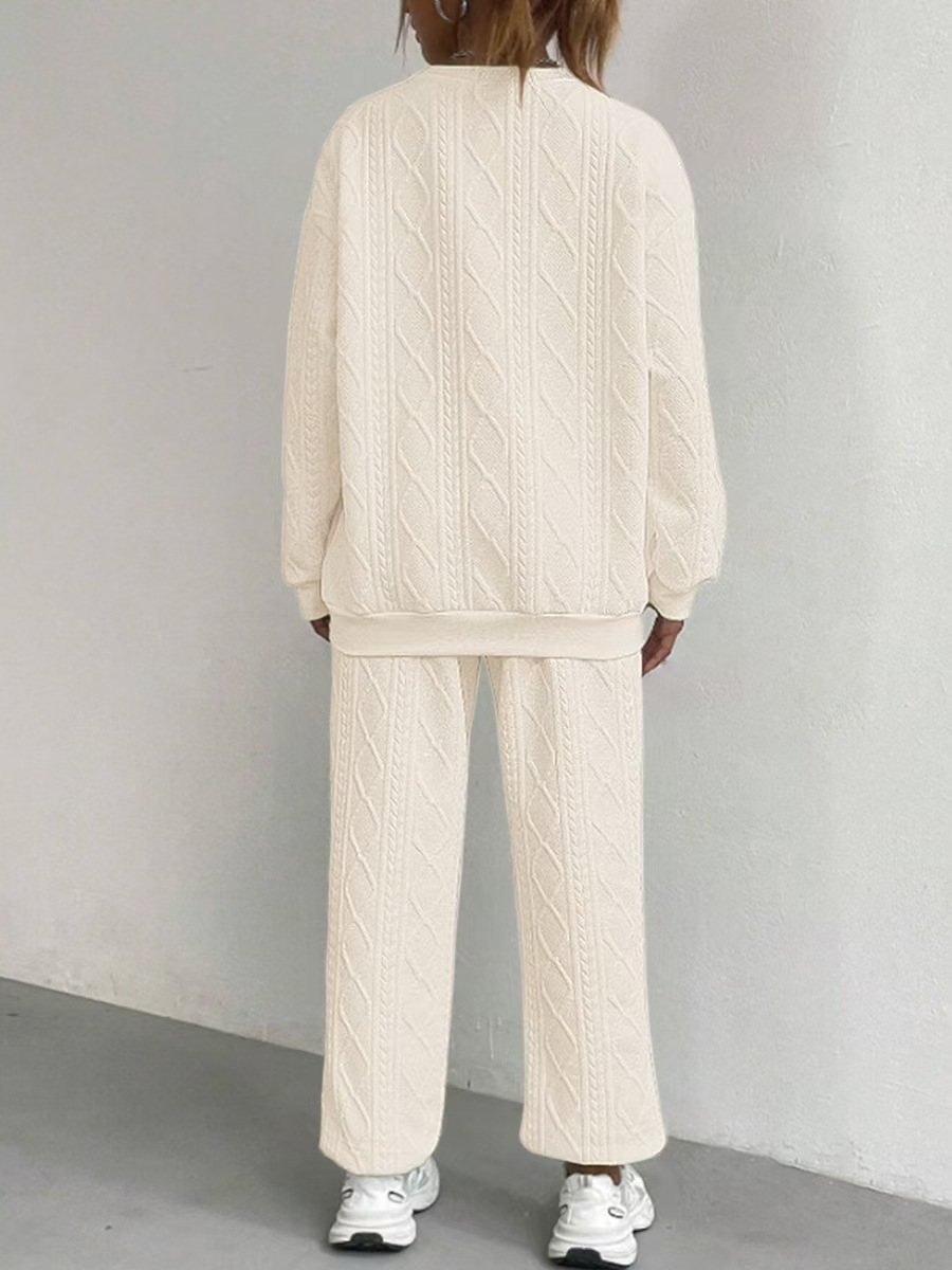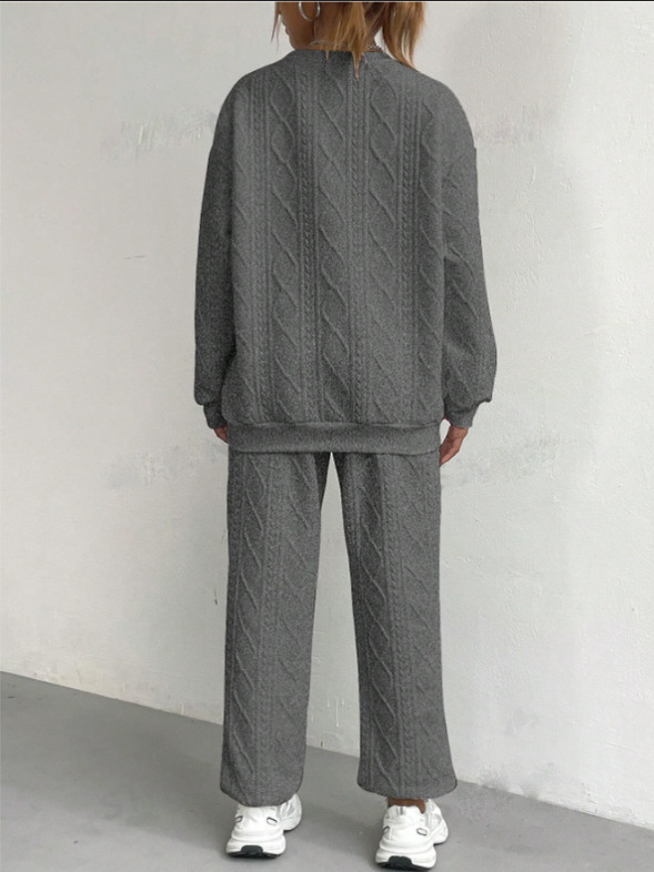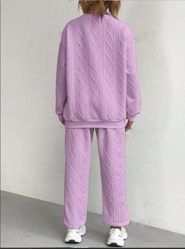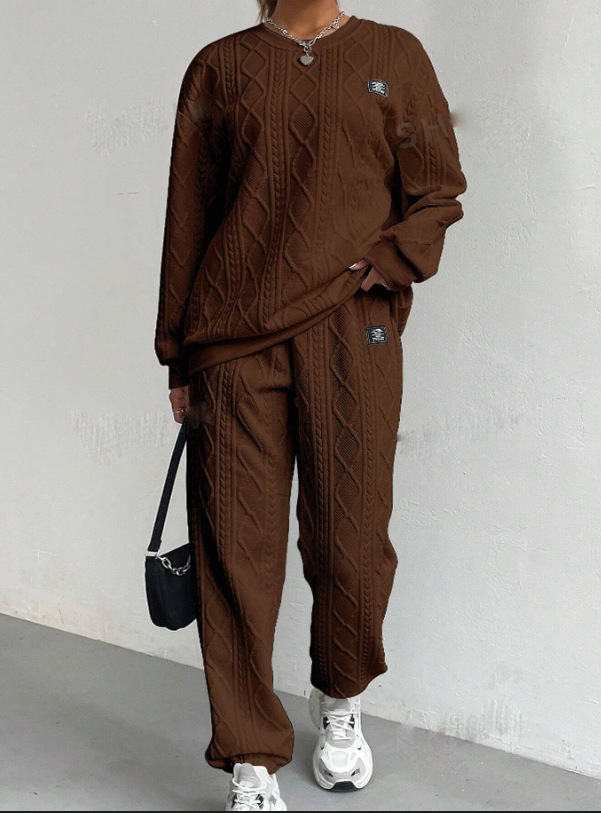2025 Autumn and Winter European and American Clothing Cross-Border New Fashion Threaded Jacquard Pants Casual Two-Piece Suit for Women