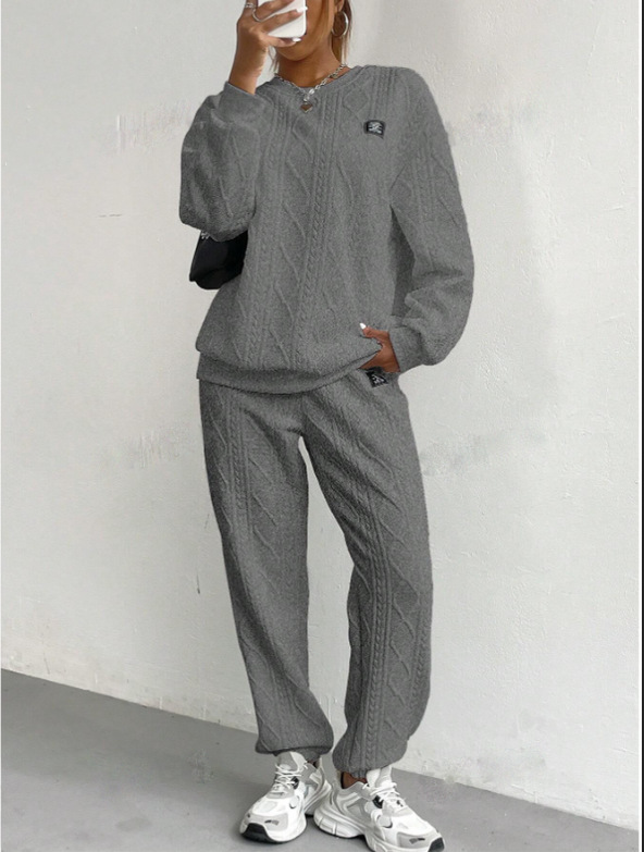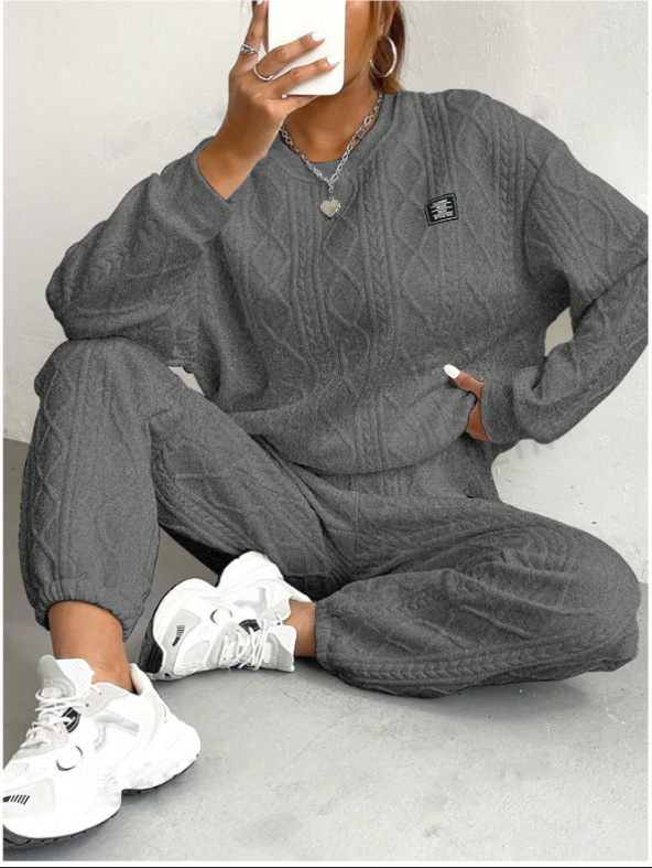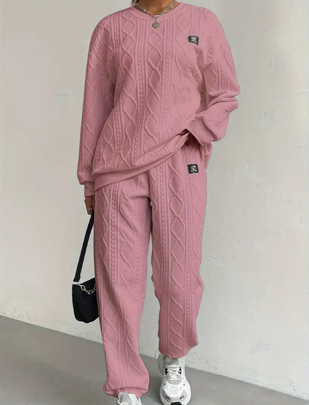2025秋冬季欧美女装跨境新款时尚螺纹提花长裤休闲两件套套装女