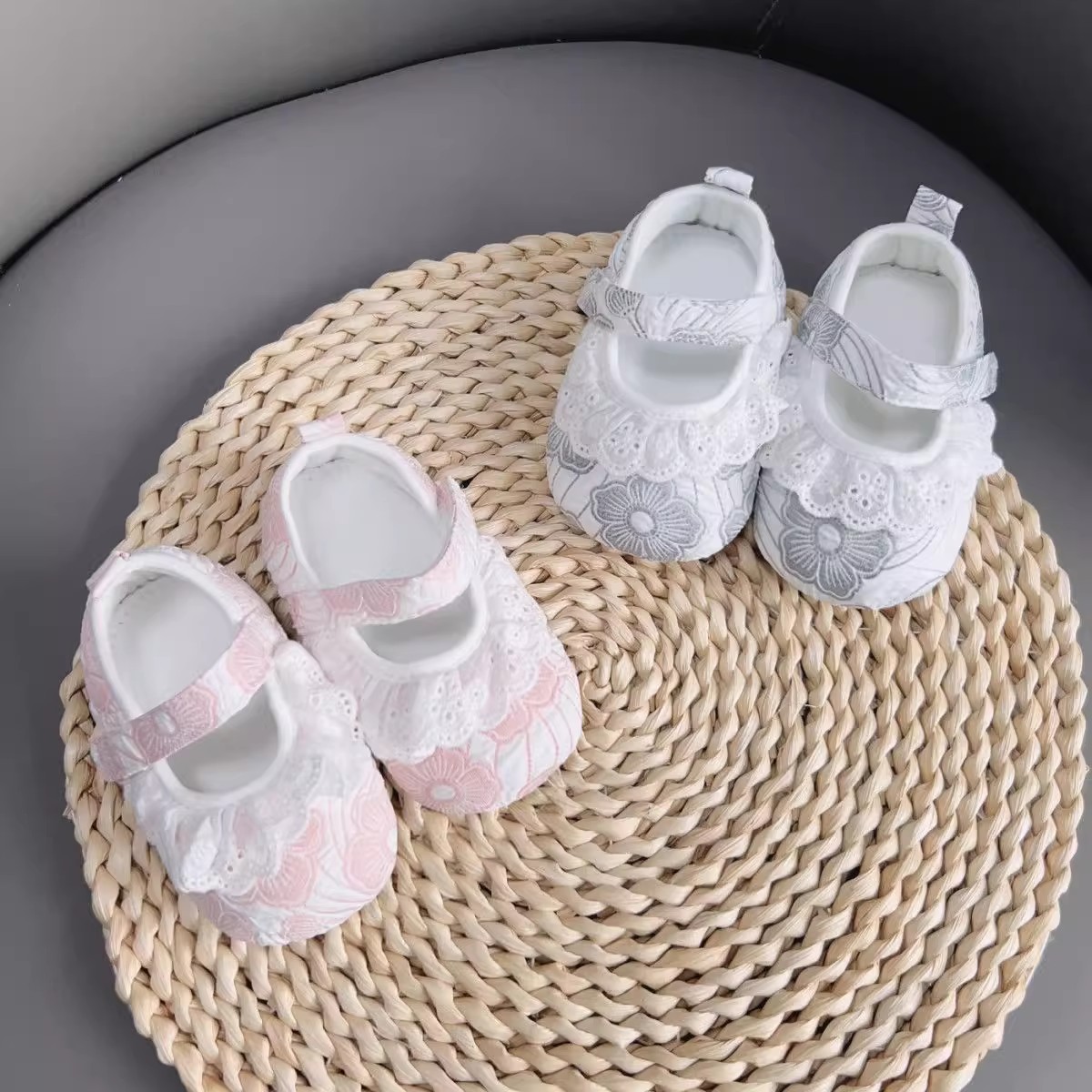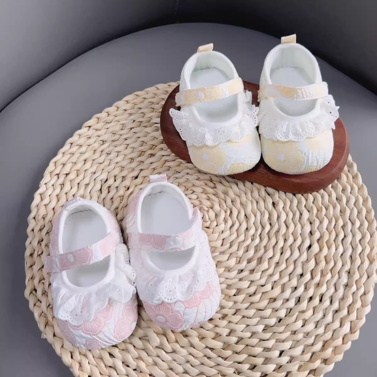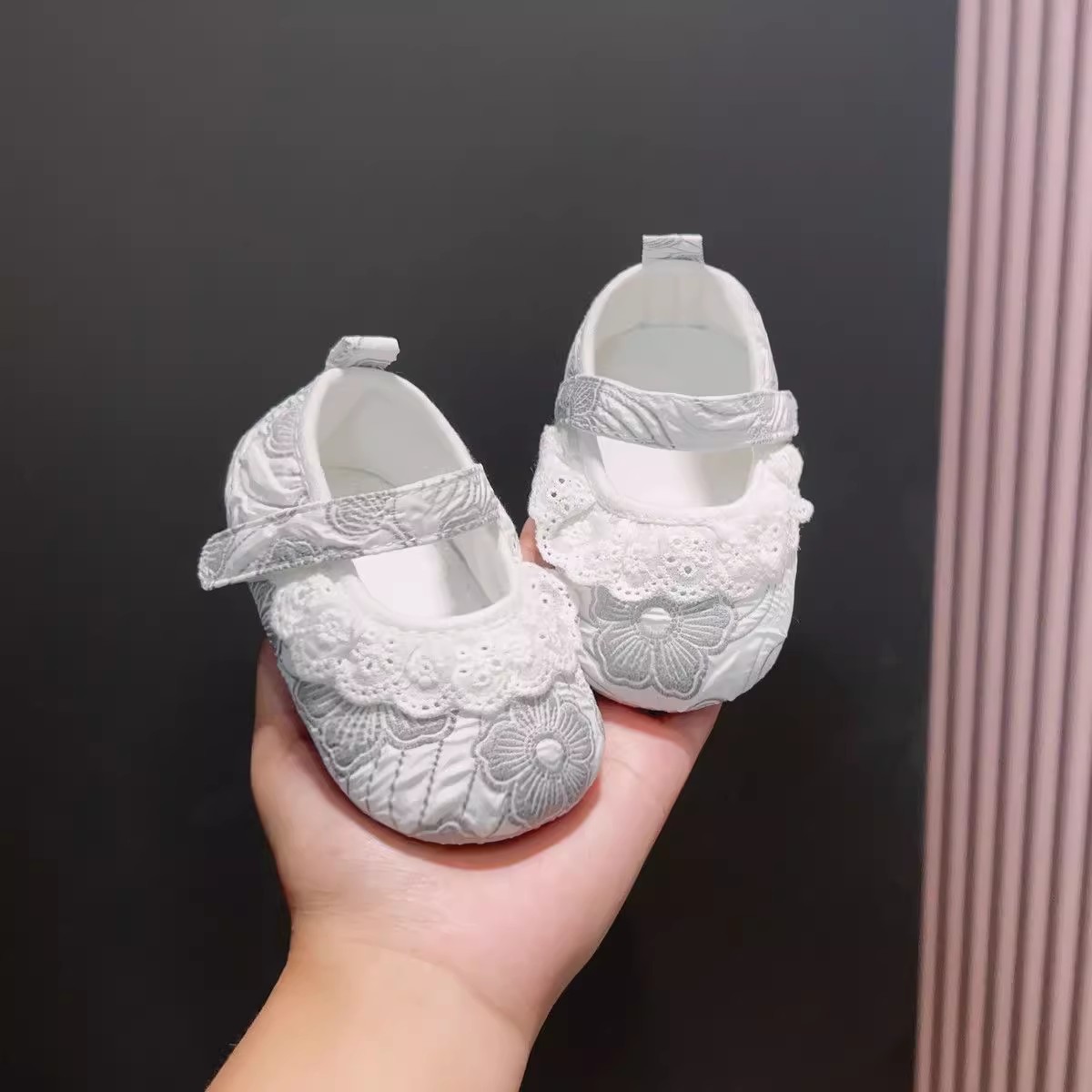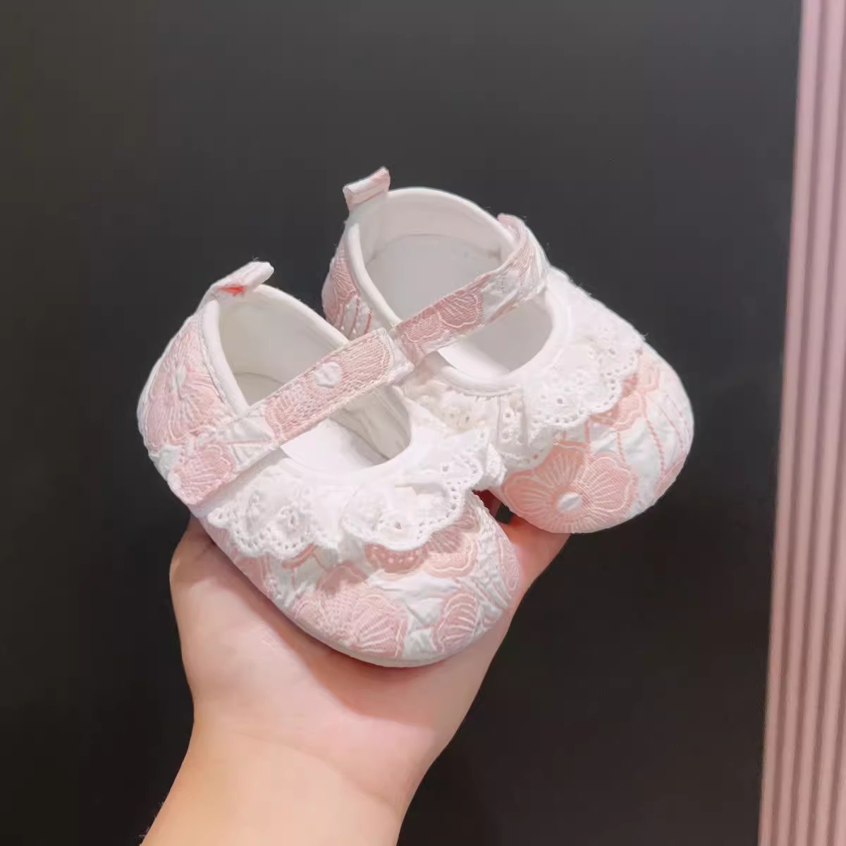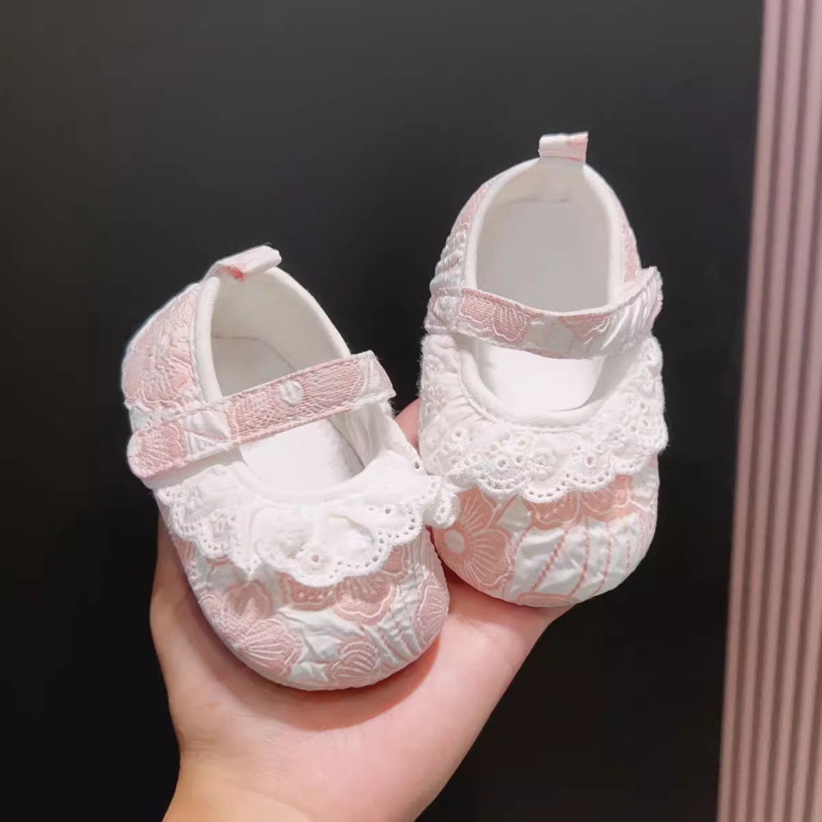 新生婴儿公主鞋软底蕾丝花边女宝宝学步春秋0-1岁防滑不掉布鞋