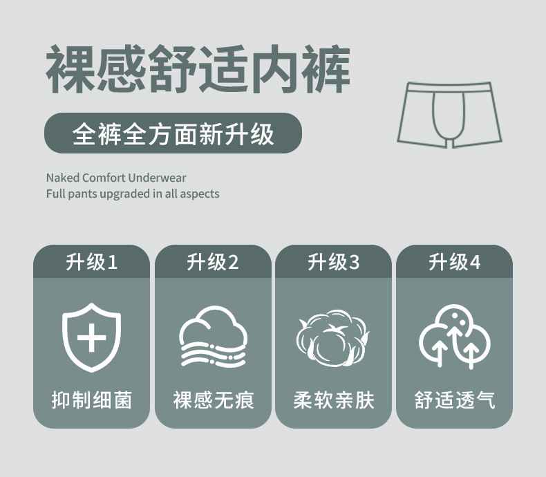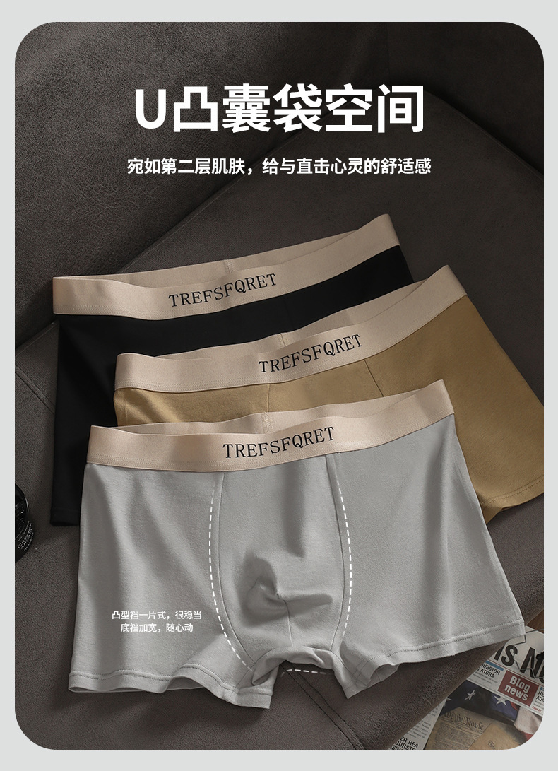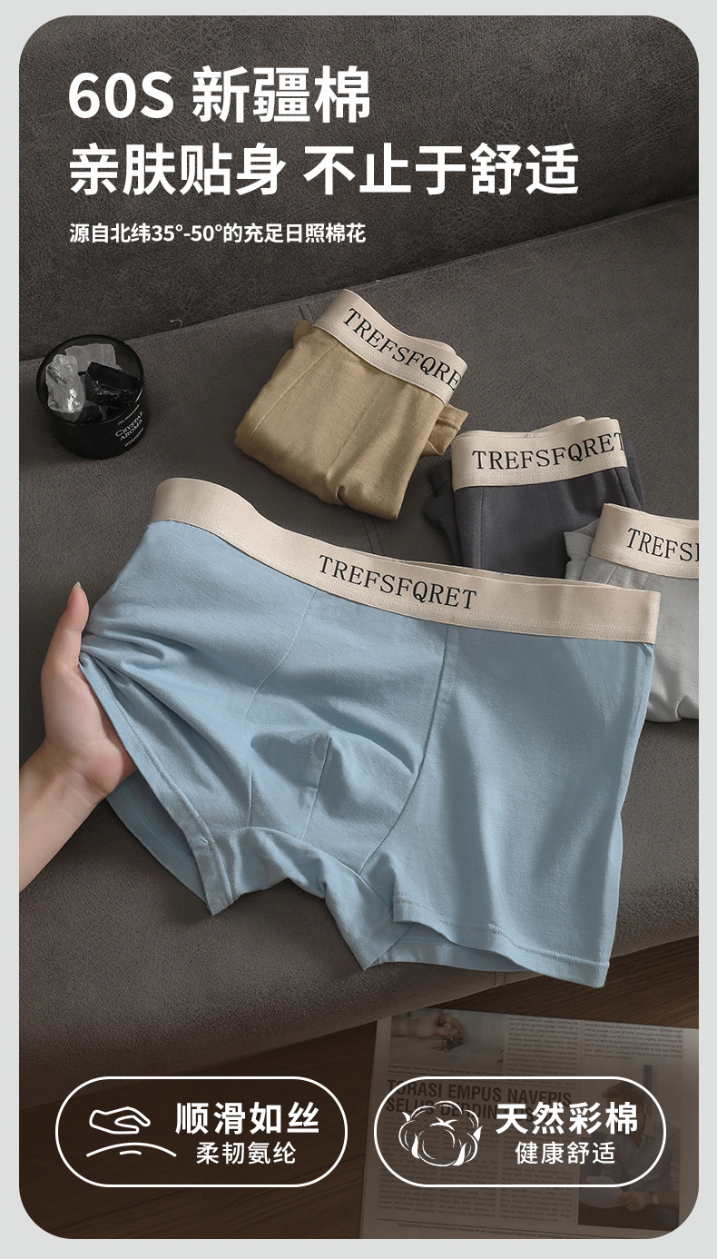 字母男士内裤时尚青少年彩棉抗菌裆透气全棉男生运动平角四角短裤