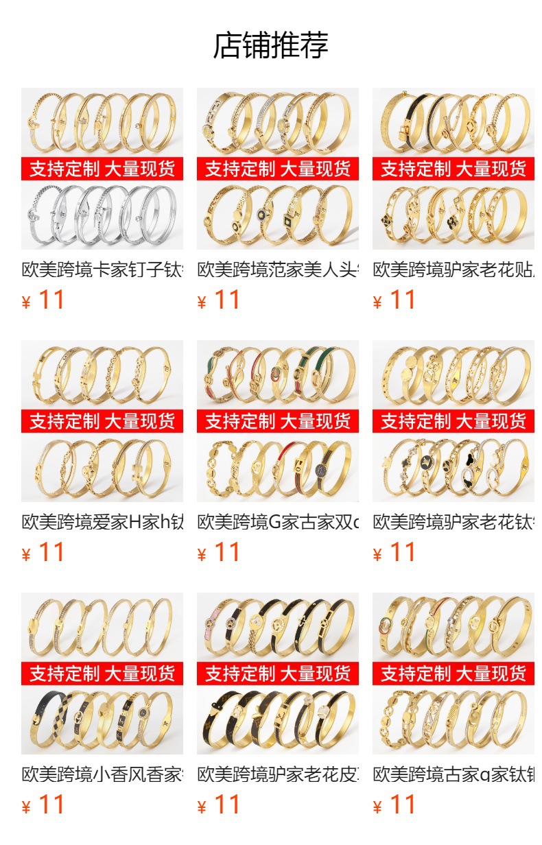 欧美跨境驴家老花皮革贴皮钛钢手镯不掉色饰品手环手饰首饰配饰