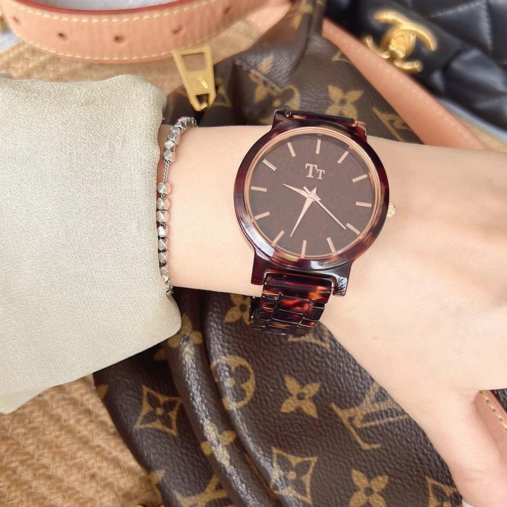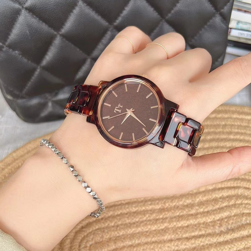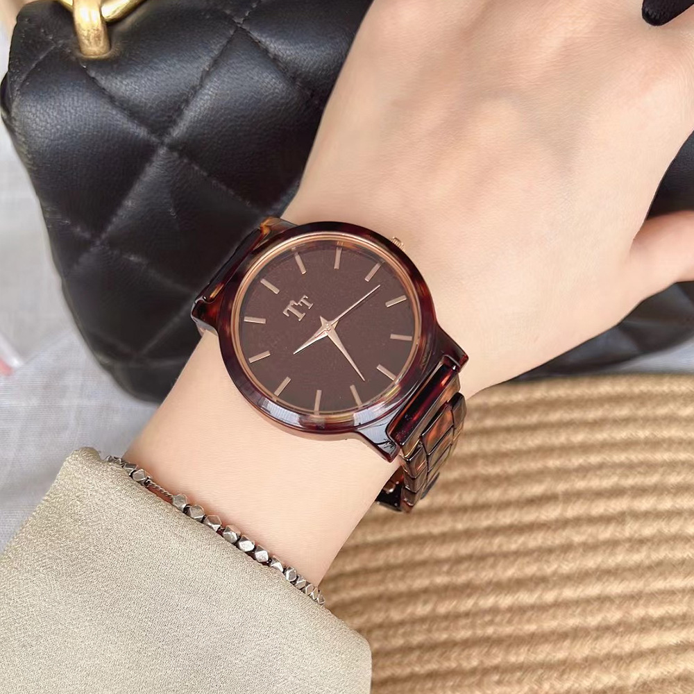 Tt Watch Large Dial Simple Imported Glasses Bakelite Design Dark Brown Zen Style Personalized Student Female Watch