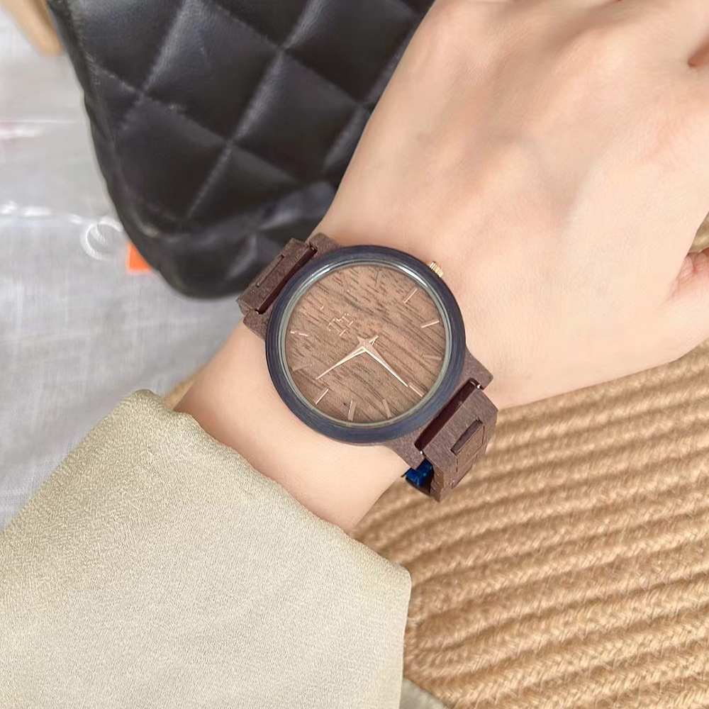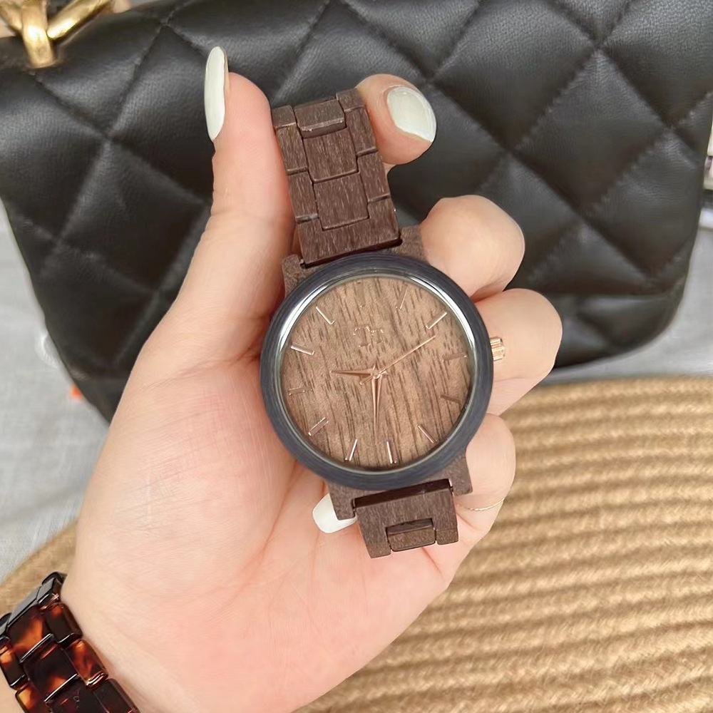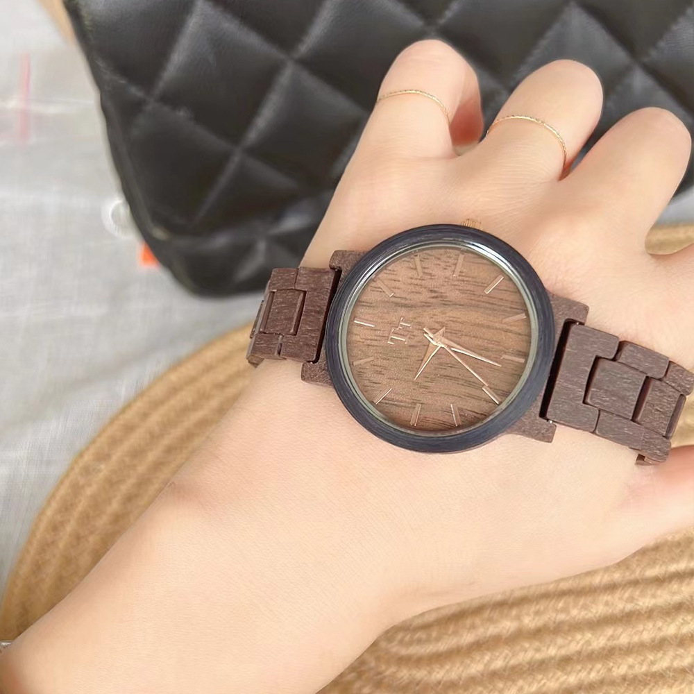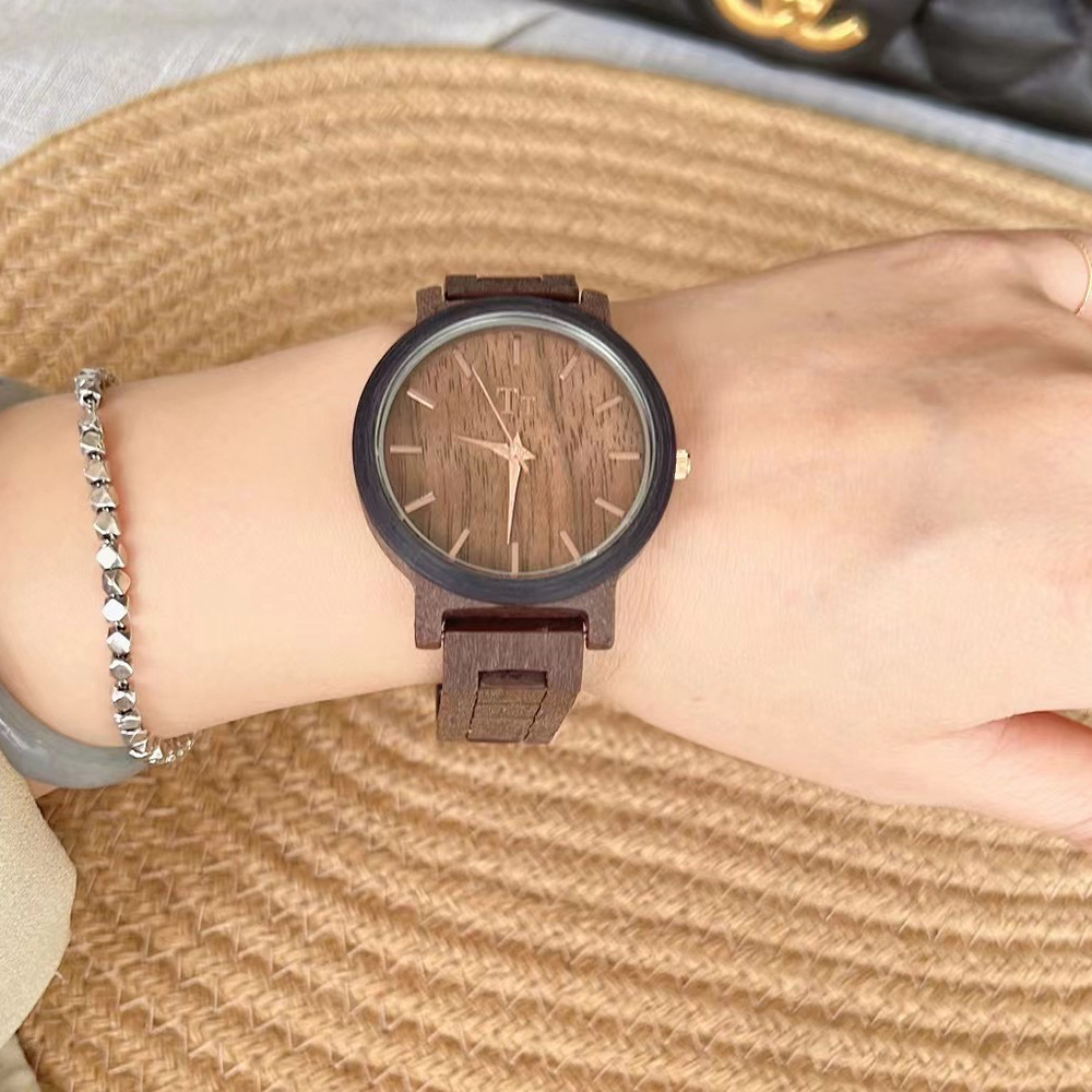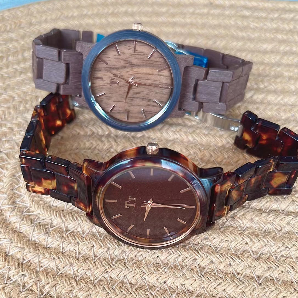 TT手表大表盘简约进口眼镜胶木纹设计深棕色禅意风个性学生女表