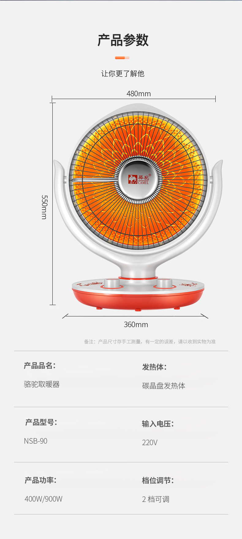 骆驼小太阳取暖器家用节能暖风机小型冬天速热电暖气热扇烤火器炉