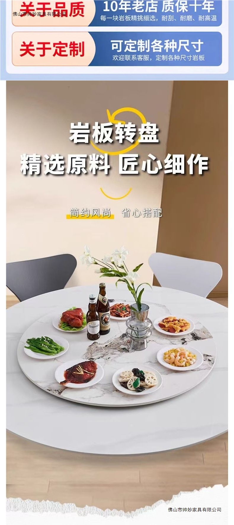 岩板转盘家用小户型圆桌餐桌转盘岩板桌面圆盘桌旋转盘台面