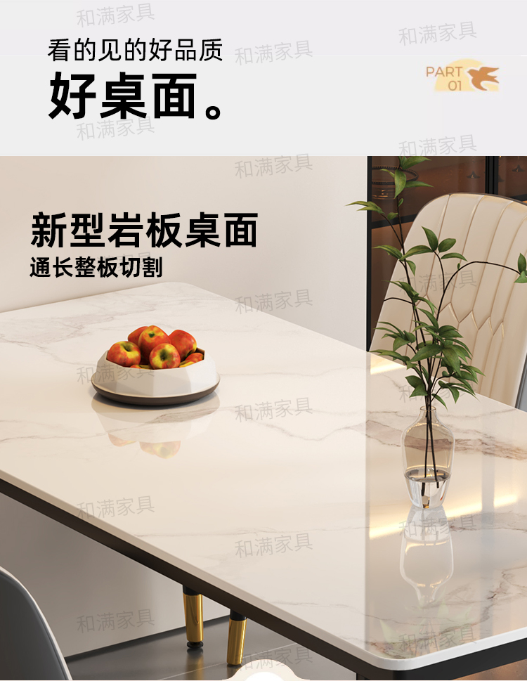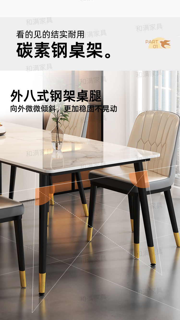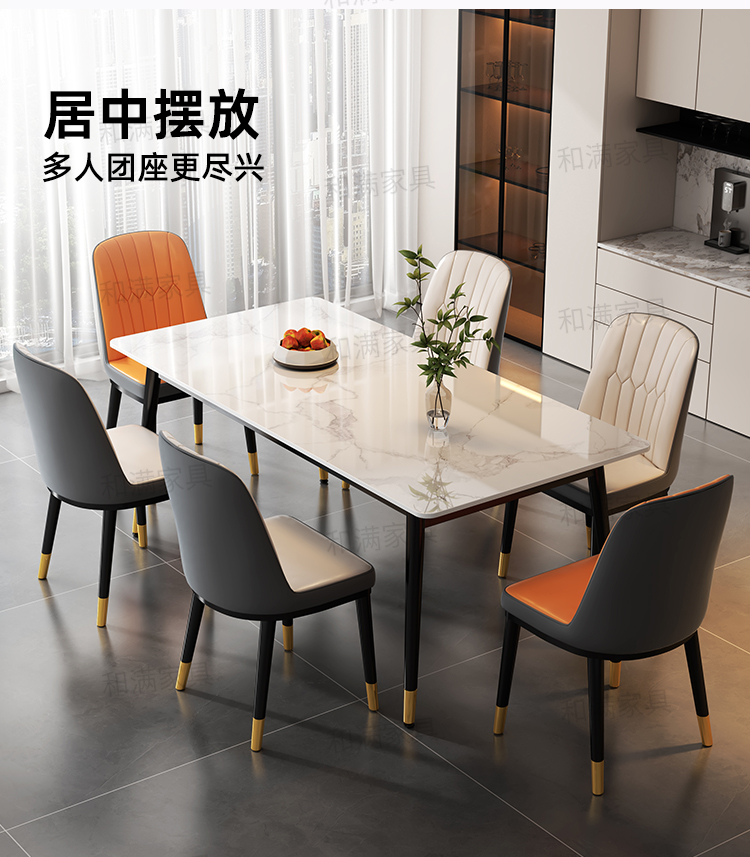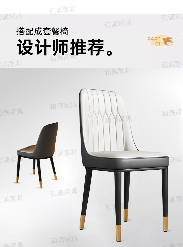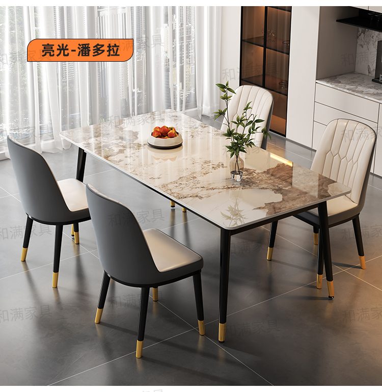 【亮光潘多拉】单桌岩板12mm+闪电椅*6