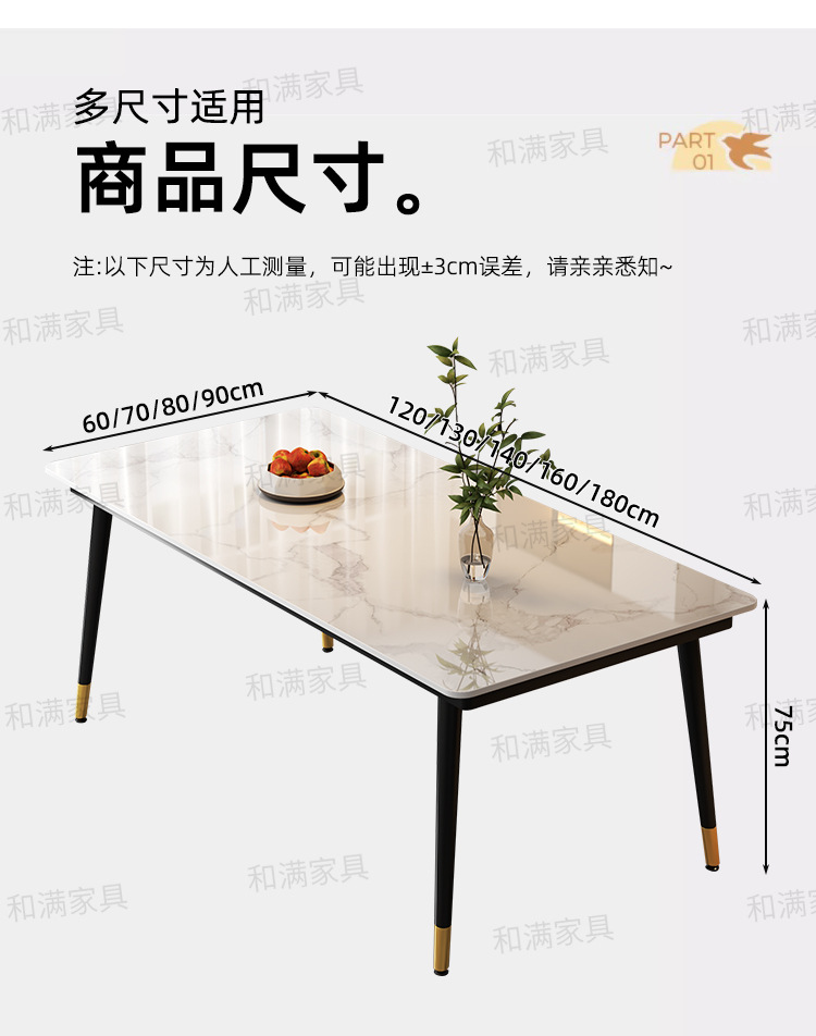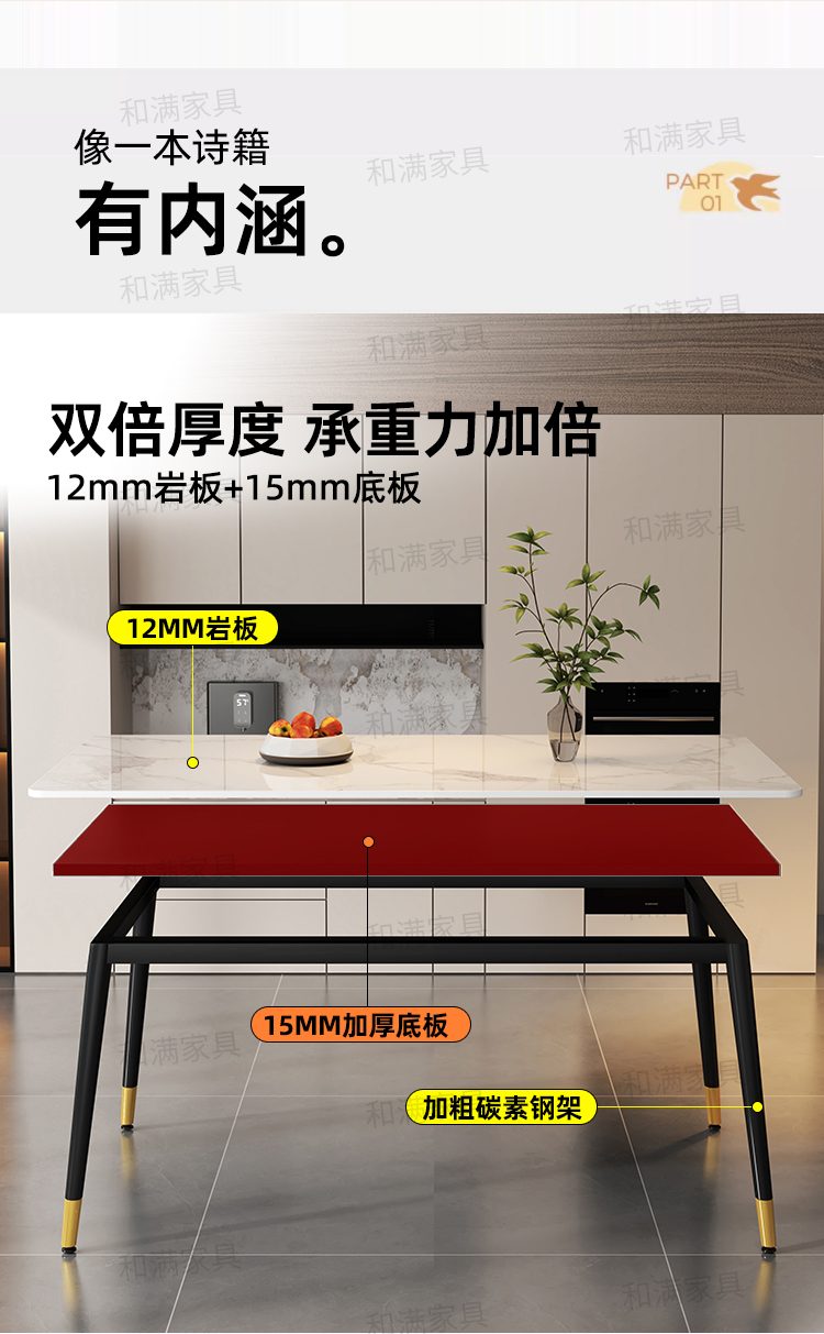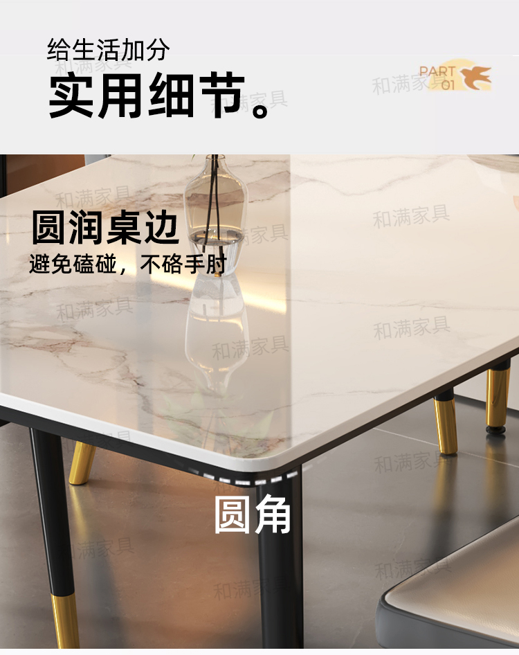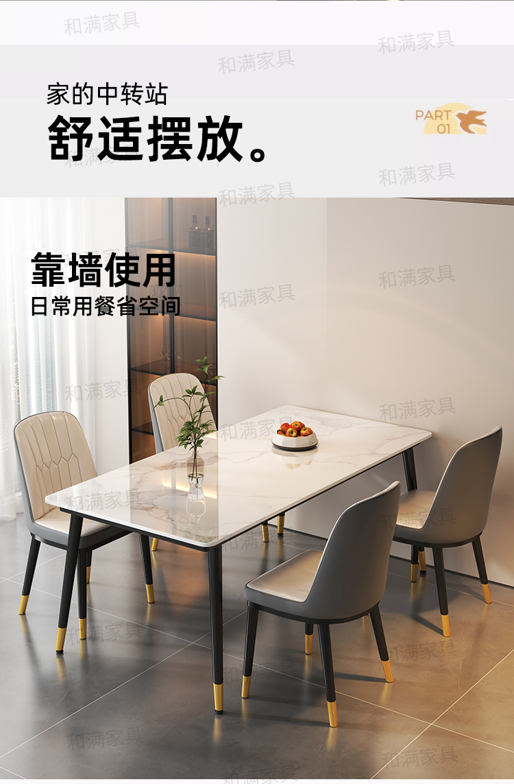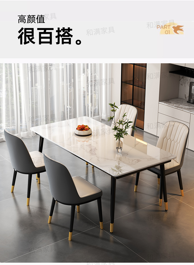 【亮光潘多拉】单桌岩板12mm+闪电椅*6