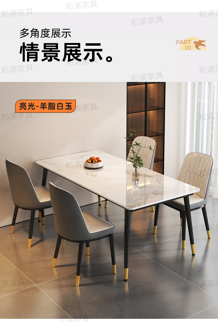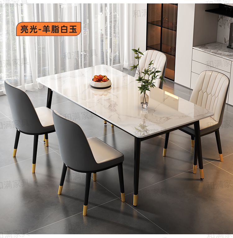 【亮光羊脂白玉】单桌岩板12mm+闪电椅*6