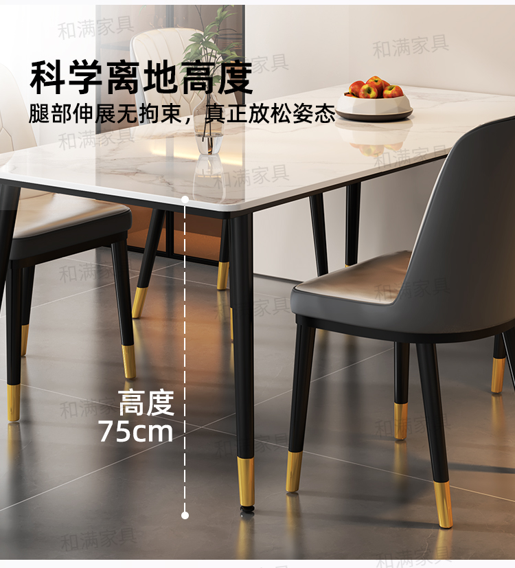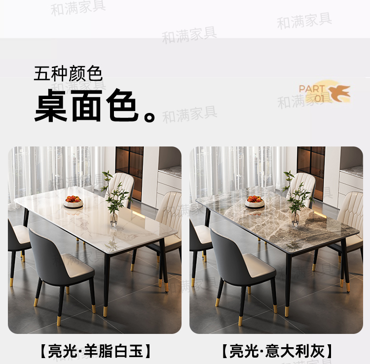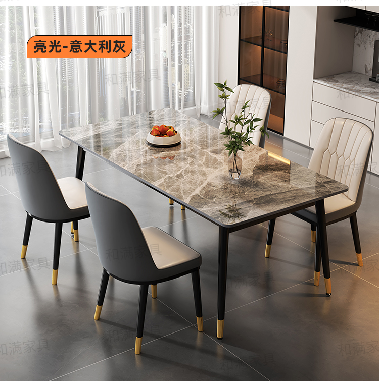 【亮光意大利灰】单桌岩板12mm+闪电椅*6