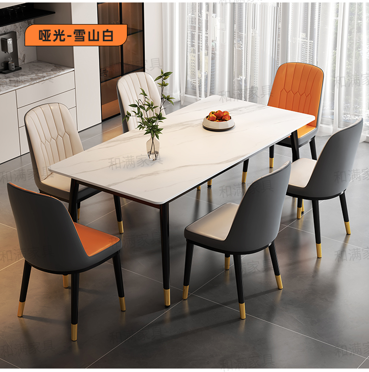 【哑光雪山白】单桌岩板12mm+闪电椅*6