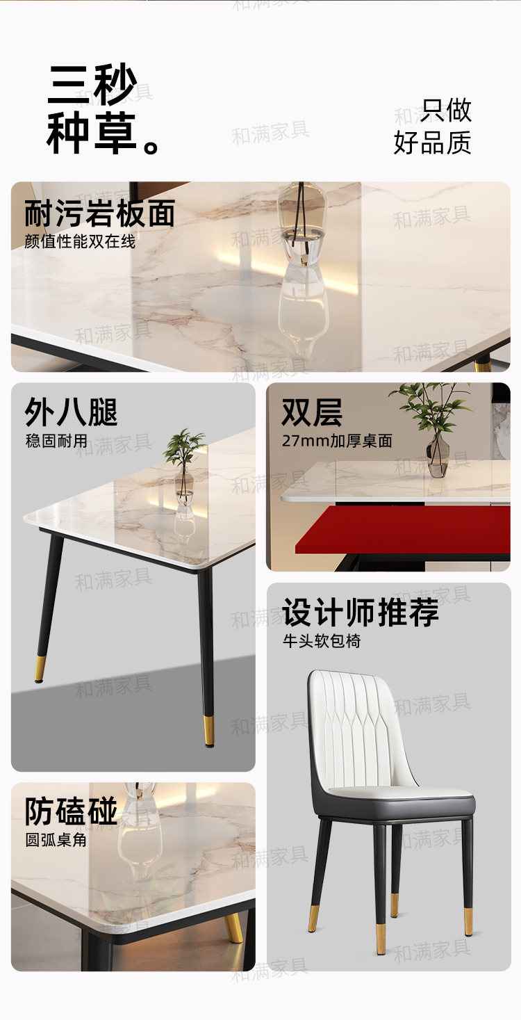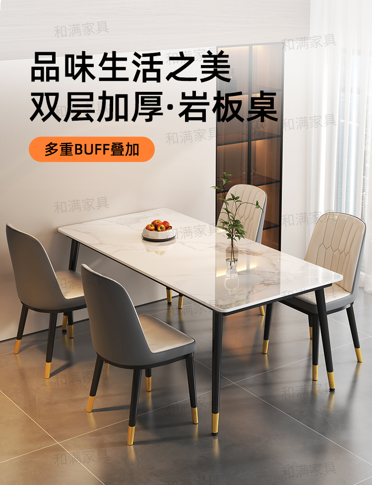 岩板餐桌家用小户型简约现代餐台餐厅饭店出租房用长方形吃饭桌子