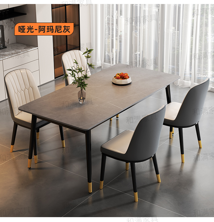 【哑光阿玛尼灰】单桌岩板12mm+闪电椅*6