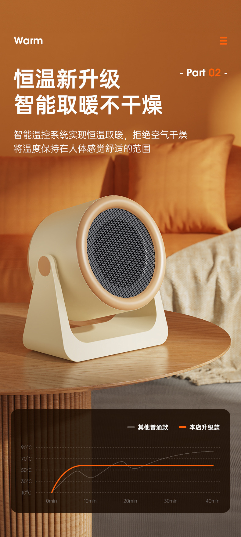 Small Household Fan Heater for Student Dormitories, Office Desktop, Fast Heating Electric Heater, Bedroom Energy-Saving Heating Artifact