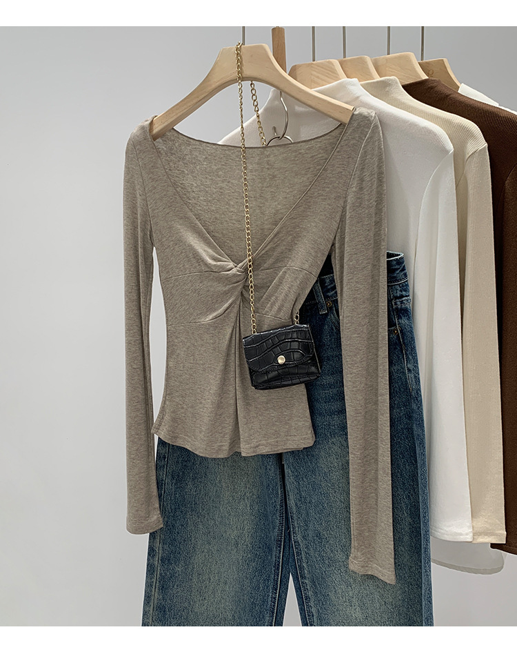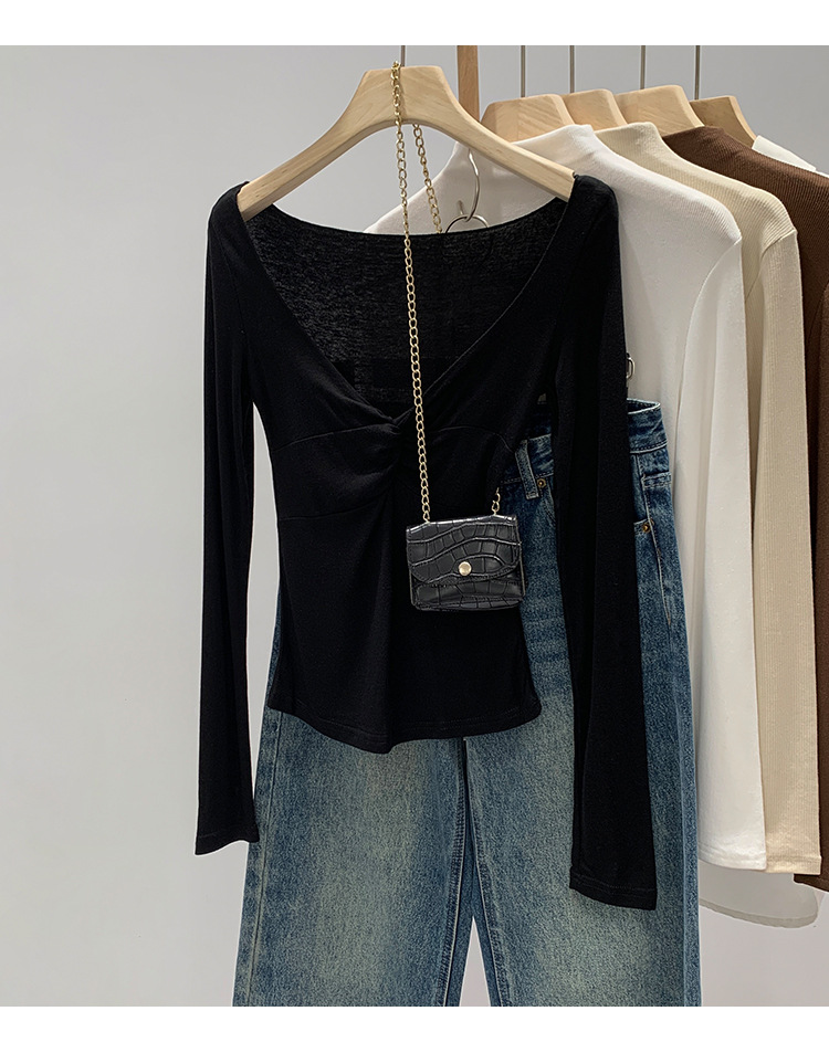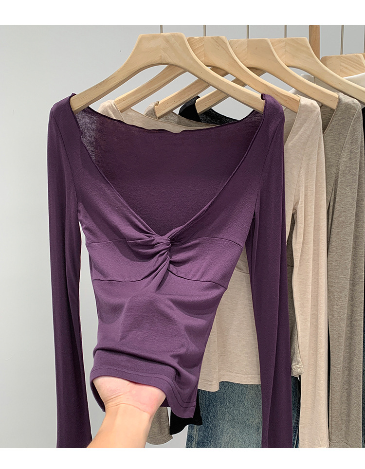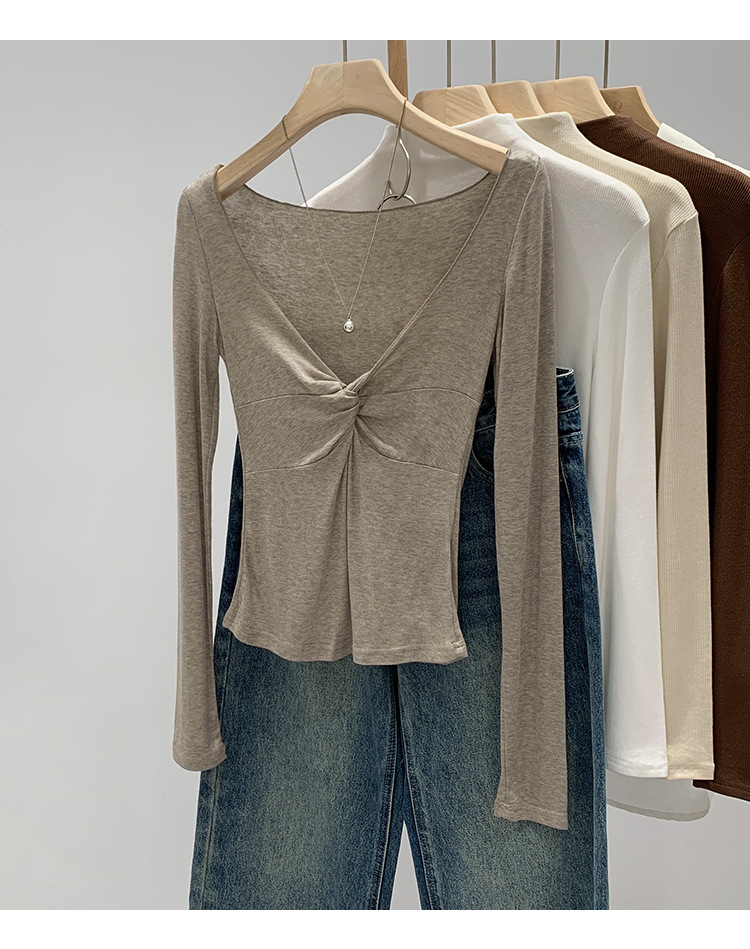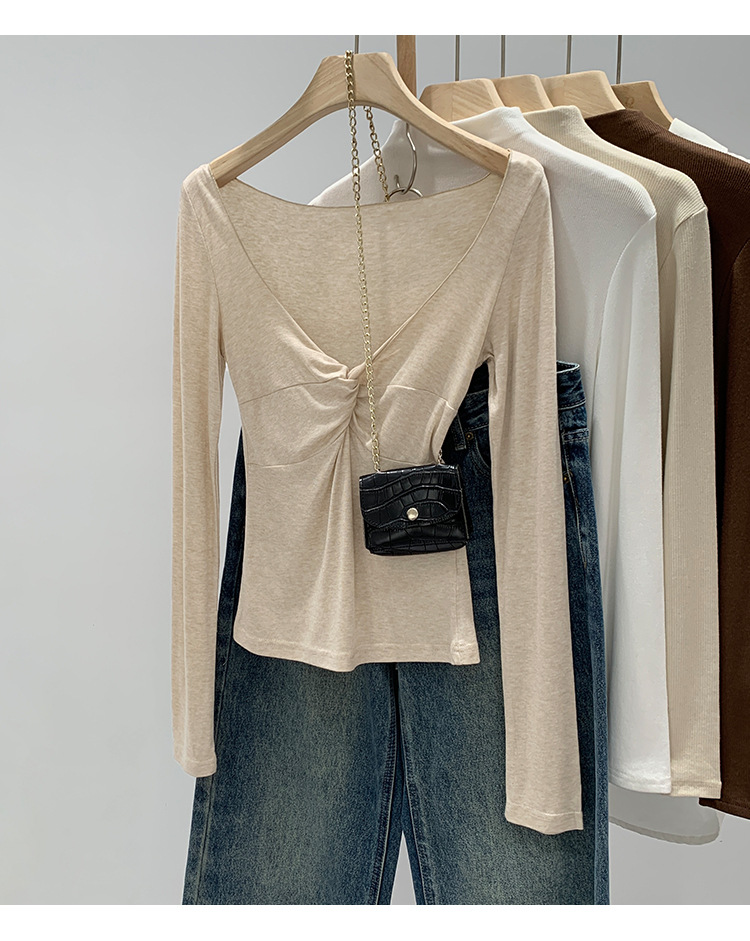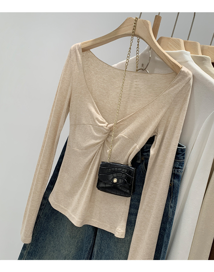 Korean-Style Women's Clothing, European Goods, Lyocell Tencel Wool, High-End Twist V-Neck Base Layer, Autumn and Winter 2026 New Model