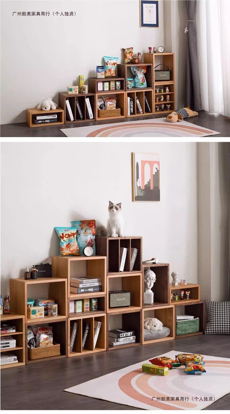 实木小书柜组合柜简约现代置物柜储物书架格子边柜客厅卧室床头柜