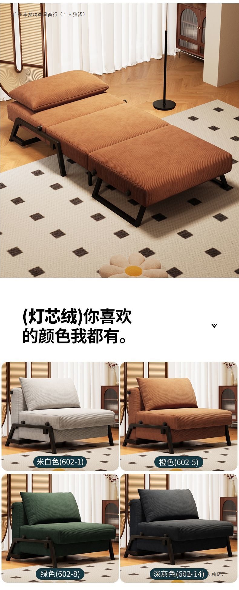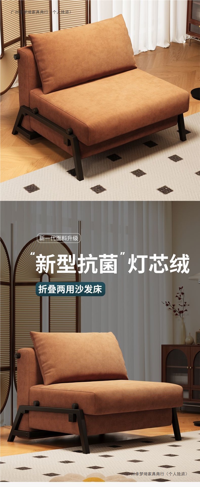 Foldable Multifunctional Dual-Purpose Sofa Bed Corduroy Single Small Apartment Living Room Study Double Office Balcony
