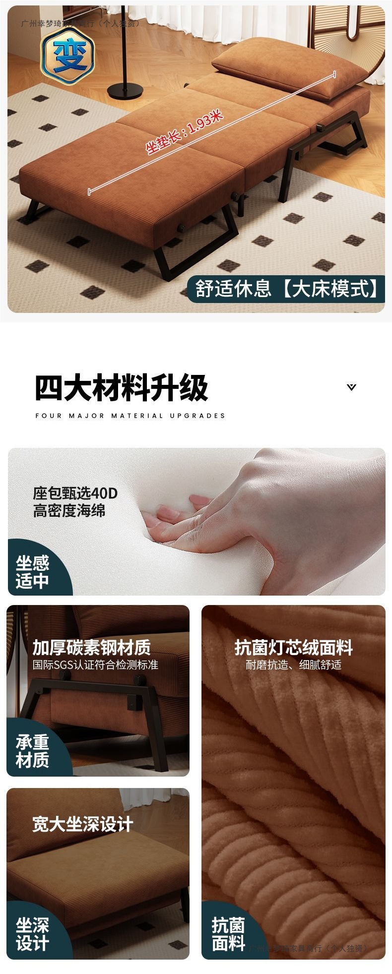 可折叠多功能两用沙发床灯芯绒单人小户型客厅书房双人办公室阳台