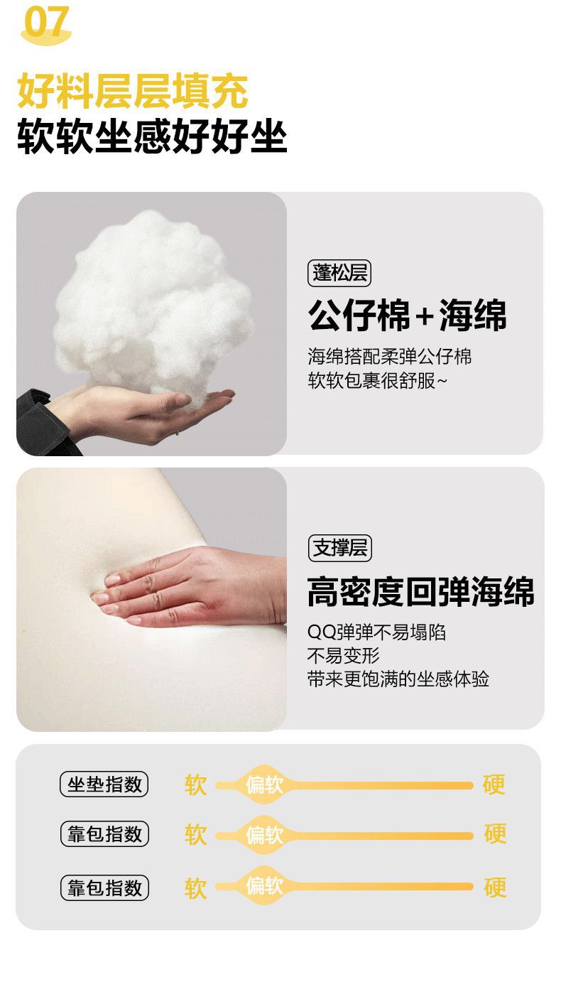 Single seat 0.73m*0.63m comes with pillow*1