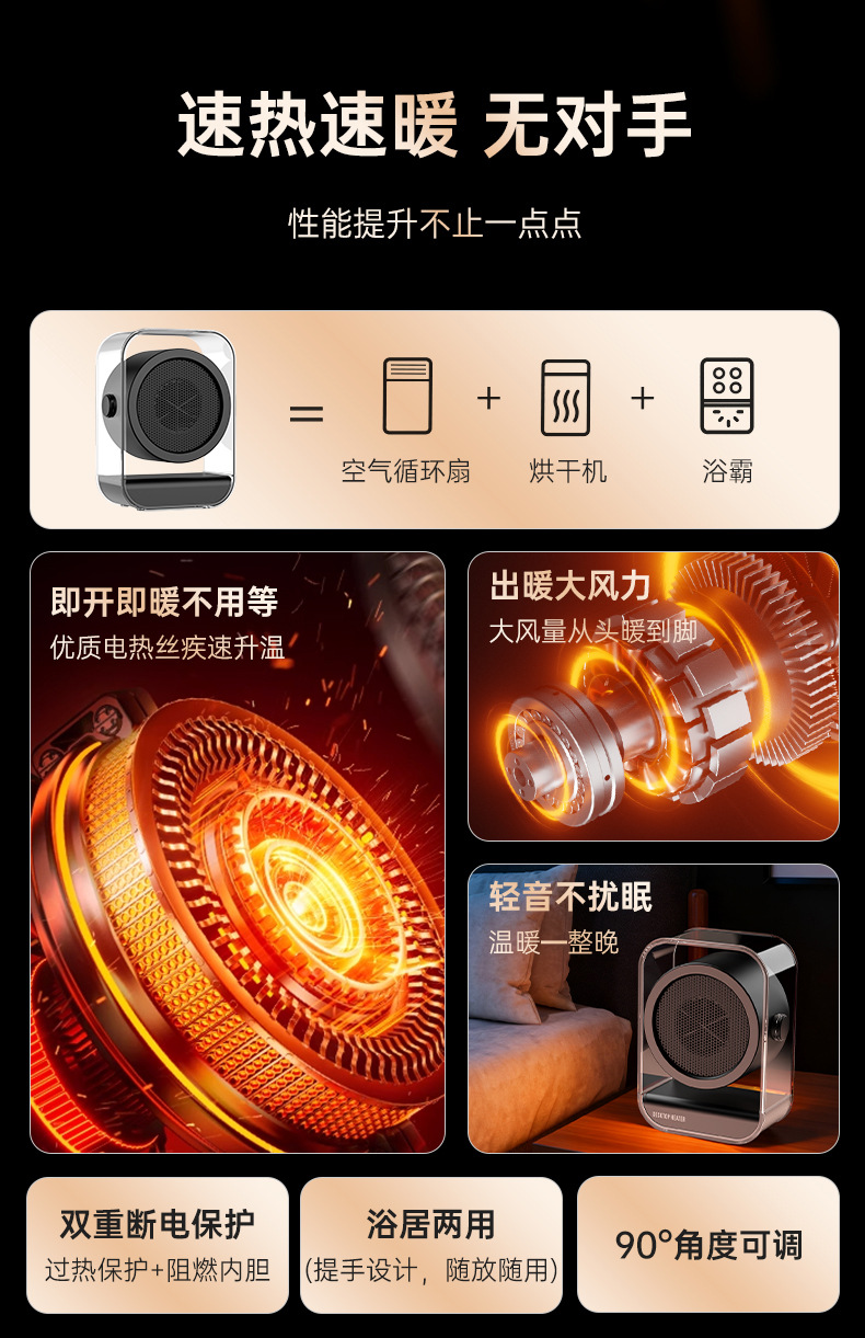跨境新款桌面暖风机家用小太阳办公室电暖气宿舍小型取暖器暖脚器