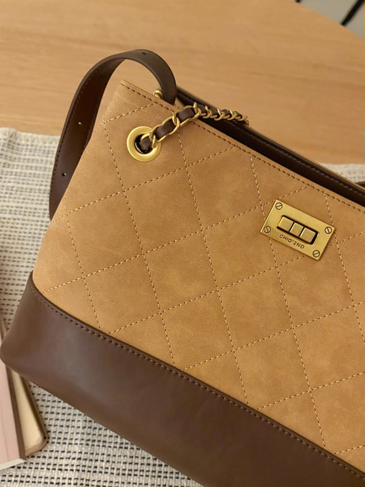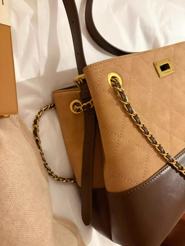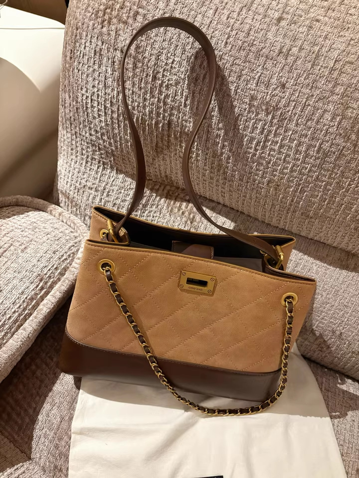 New Large-Capacity Tote Bag for Women Autumn and Winter Suede Quilted Chain Shoulder Crossbody Bag Fashionable Texture Tote Bag