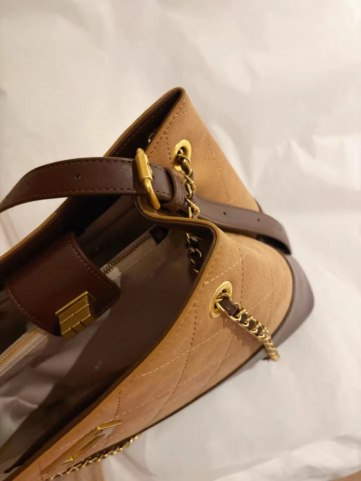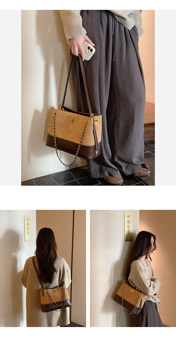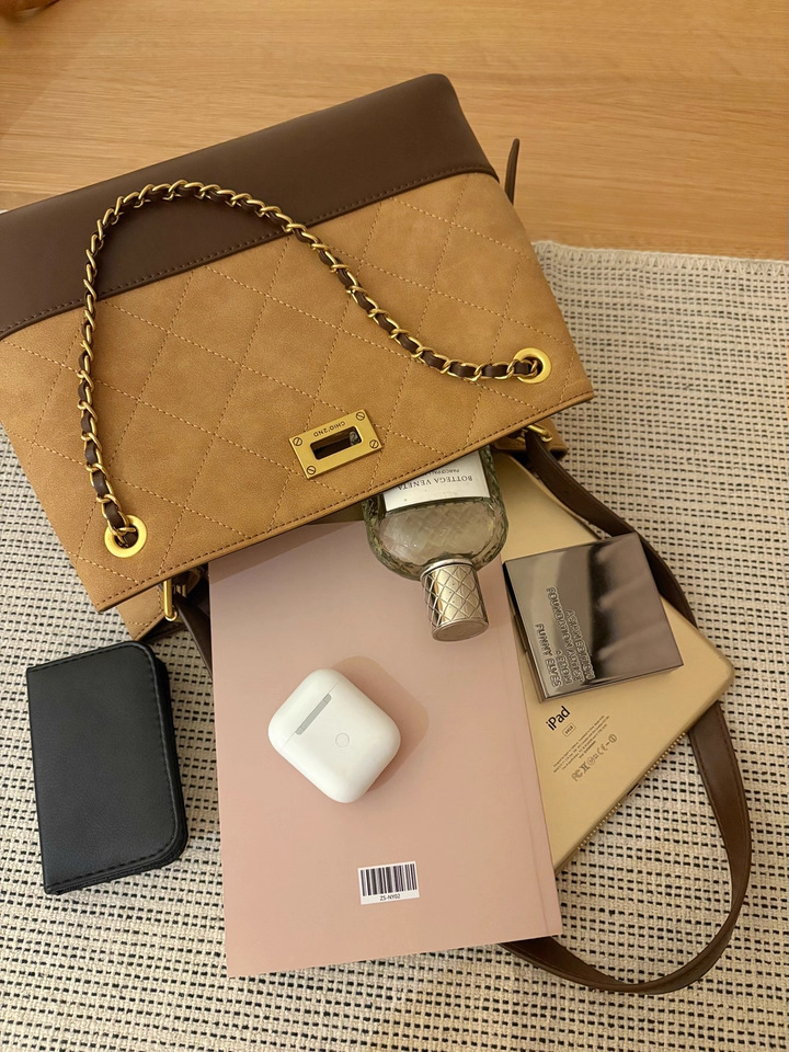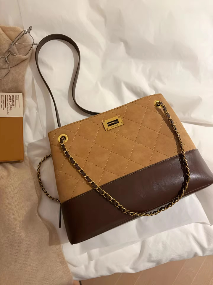 新款大容量托特包包女秋冬麂皮菱格链条单肩斜挎包时尚质感托特包