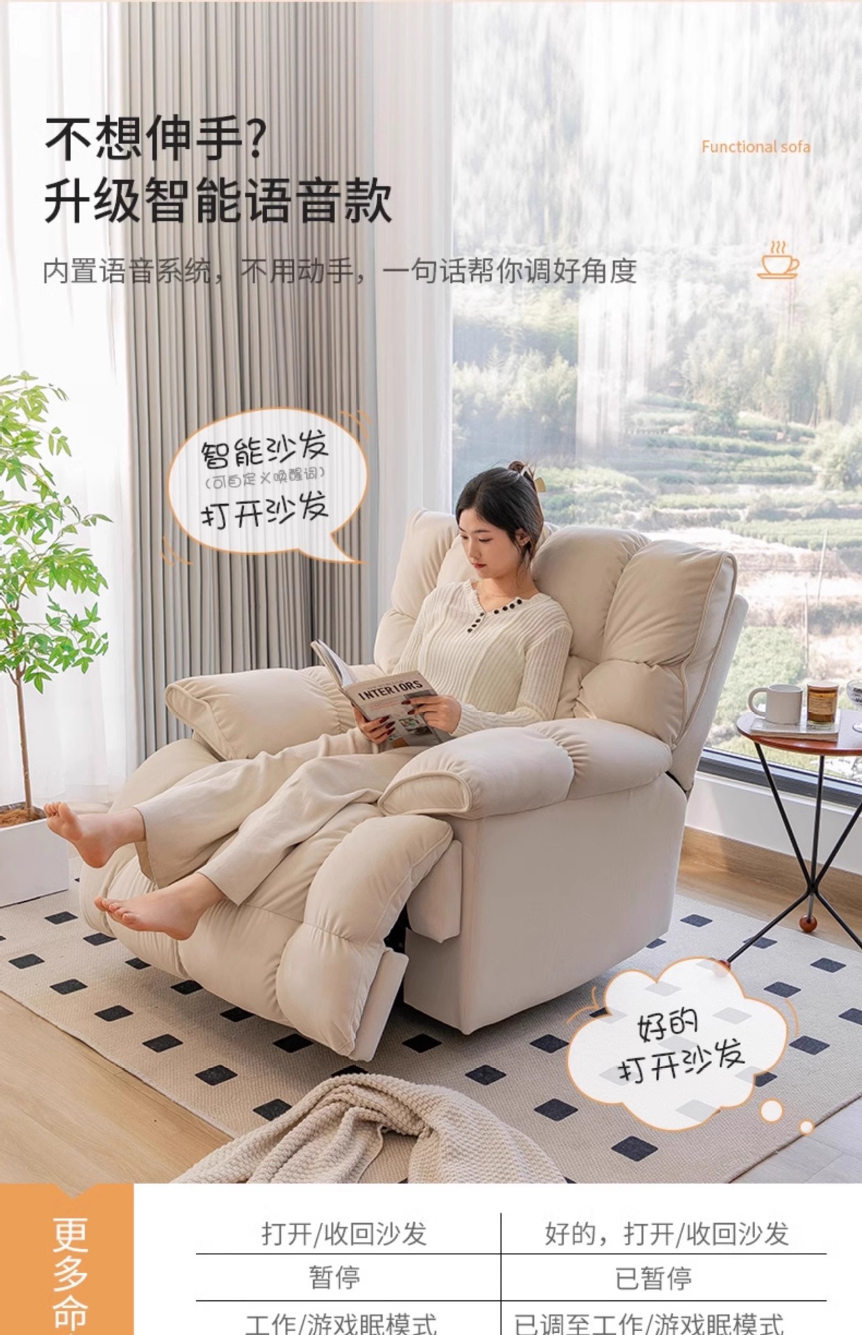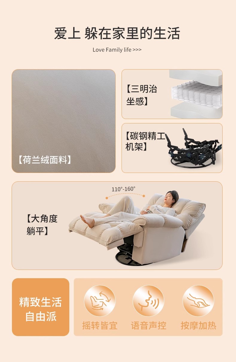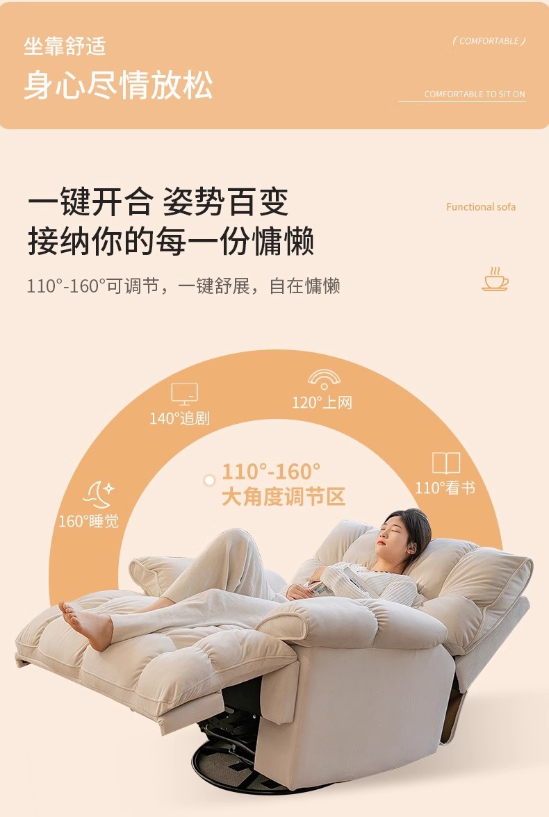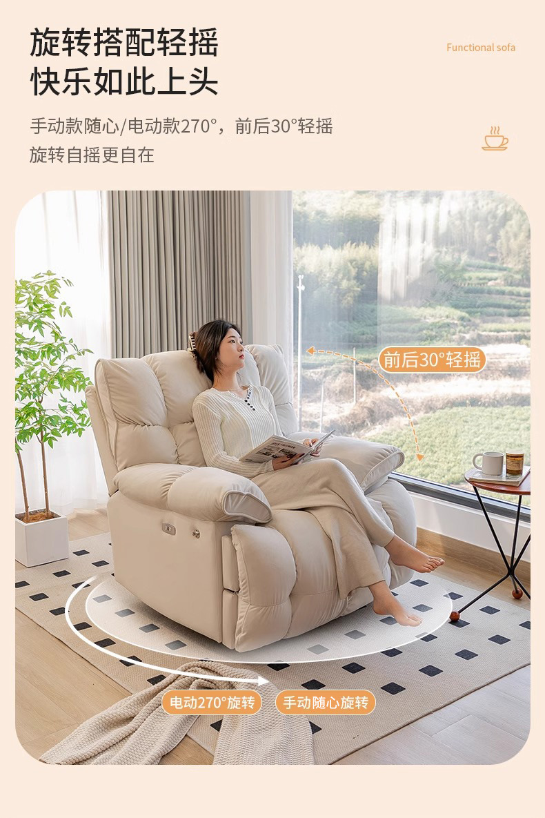 云朵单人沙发电动摇摇椅客厅功能休闲旋转躺椅可躺可睡懒人沙发